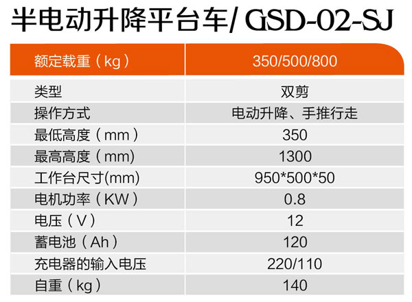 半電動升降平臺車GSD-02-SJ 作者:admin | 日期:2019-01-04 05:06:26 | 人氣:985 上一篇:半電動升降平臺車GSD-02-DJ 下一篇:電動行走型升降平臺GSD-03-DJ