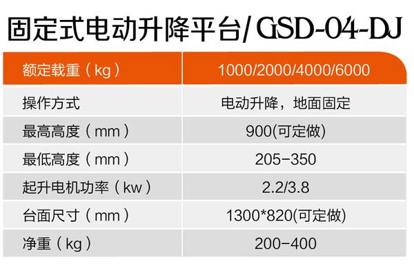 固定式電動升降平臺GSD-04-DJ 作者:admin | 日期:2019-01-04 05:07:18 | 人氣:1634 上一篇:簡便型全電動平臺車GSD-03-SJ 下一篇:固定式電動升降平臺GSD-04-SJ