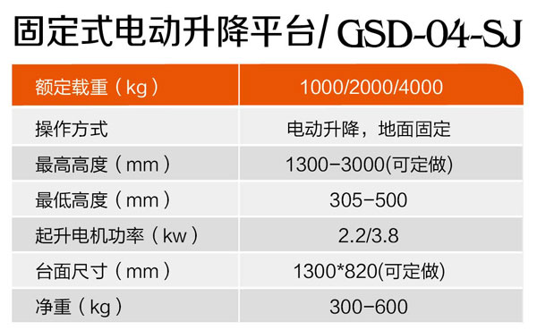 固定式電動升降平臺GSD-04-SJ 作者:admin | 日期:2019-01-04 05:07:31 | 人氣:2222 上一篇:固定式電動升降平臺GSD-04-DJ 下一篇:定制重型升降平臺GSD-09-FB
