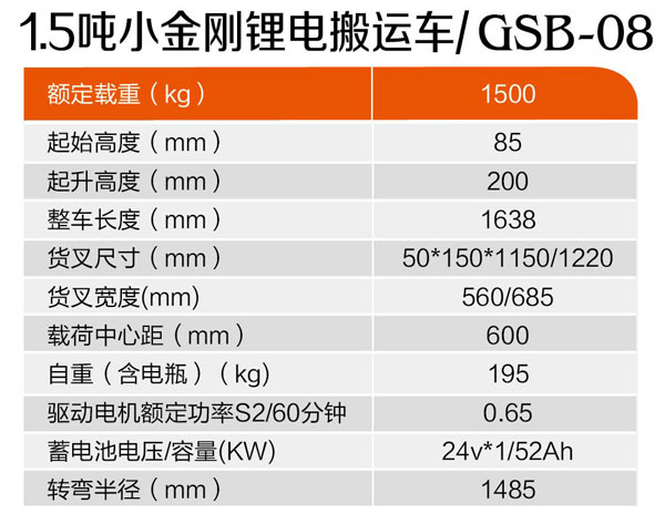 1.5噸小金剛鋰電搬運車GSB-08 作者:admin | 日期:2019-01-03 14:44:13 | 人氣:2575 上一篇:1.2噸經濟型搬運車GSB-07 下一篇:2.0噸大金剛搬運車GSB-09