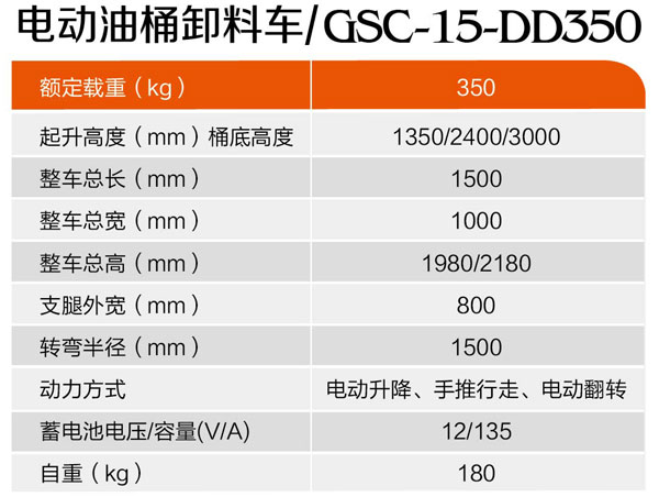 電動油桶卸料車GSC-15-DD350